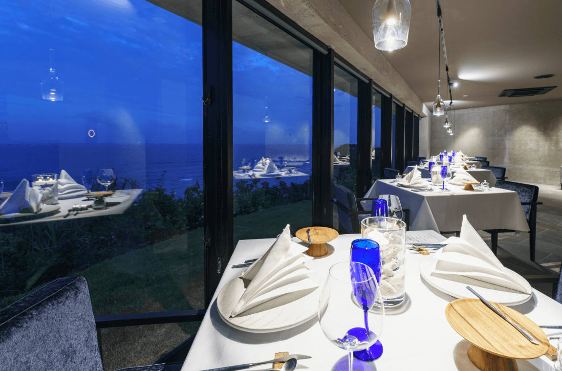 ご宿泊のゲスト専用レストランLa namyu 朝夕で違う彩りを魅せる宮古の大海原を、一望しながら趣深い琉球料理のご朝食と、至高のフレンチコースのご夕食をご堪能ください